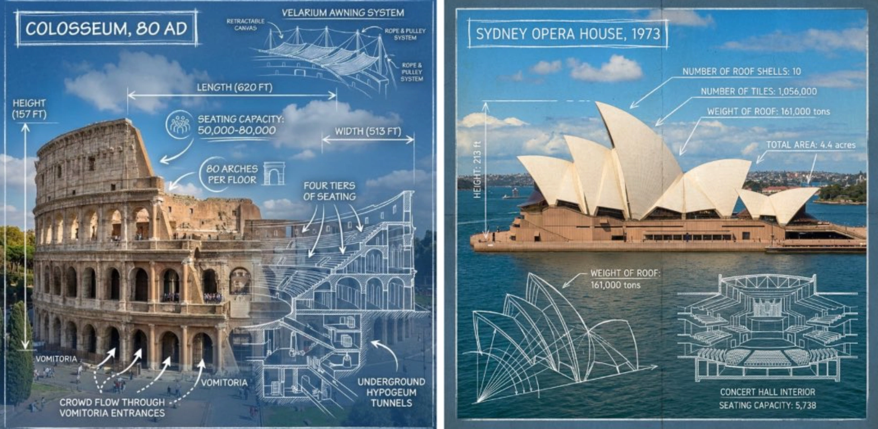 A photorealistic wide-angle landscape shot of the Statue of Liberty with the New York City skyline and harbor in the background. Superimposed on the scene is a white, hand-drawn augmented reality technical overlay. Features include: 1. Sketchy white leader lines pointing to key details like the "Torch," "Crown Rays," and "Copper Shell" with handwritten text labels. 2. Large dimensional vertical measurement arrows indicating the total height from ground to torch. 3. Small floating wireframe icons showing wind load data and material composition. Aesthetic: Structural engineering analysis, F1 broadcast graphics style, bright outdoor daylight, architectural blueprint overlay. (출처:azed_ai)