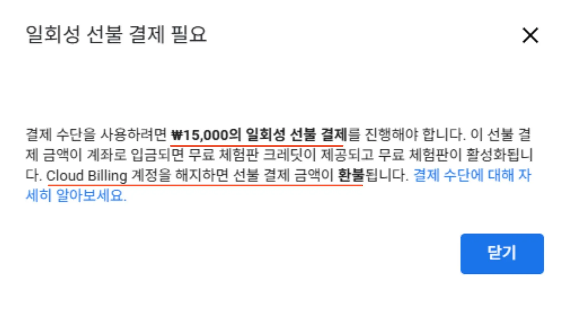 결제 진행하여 무료 크레딧 받기