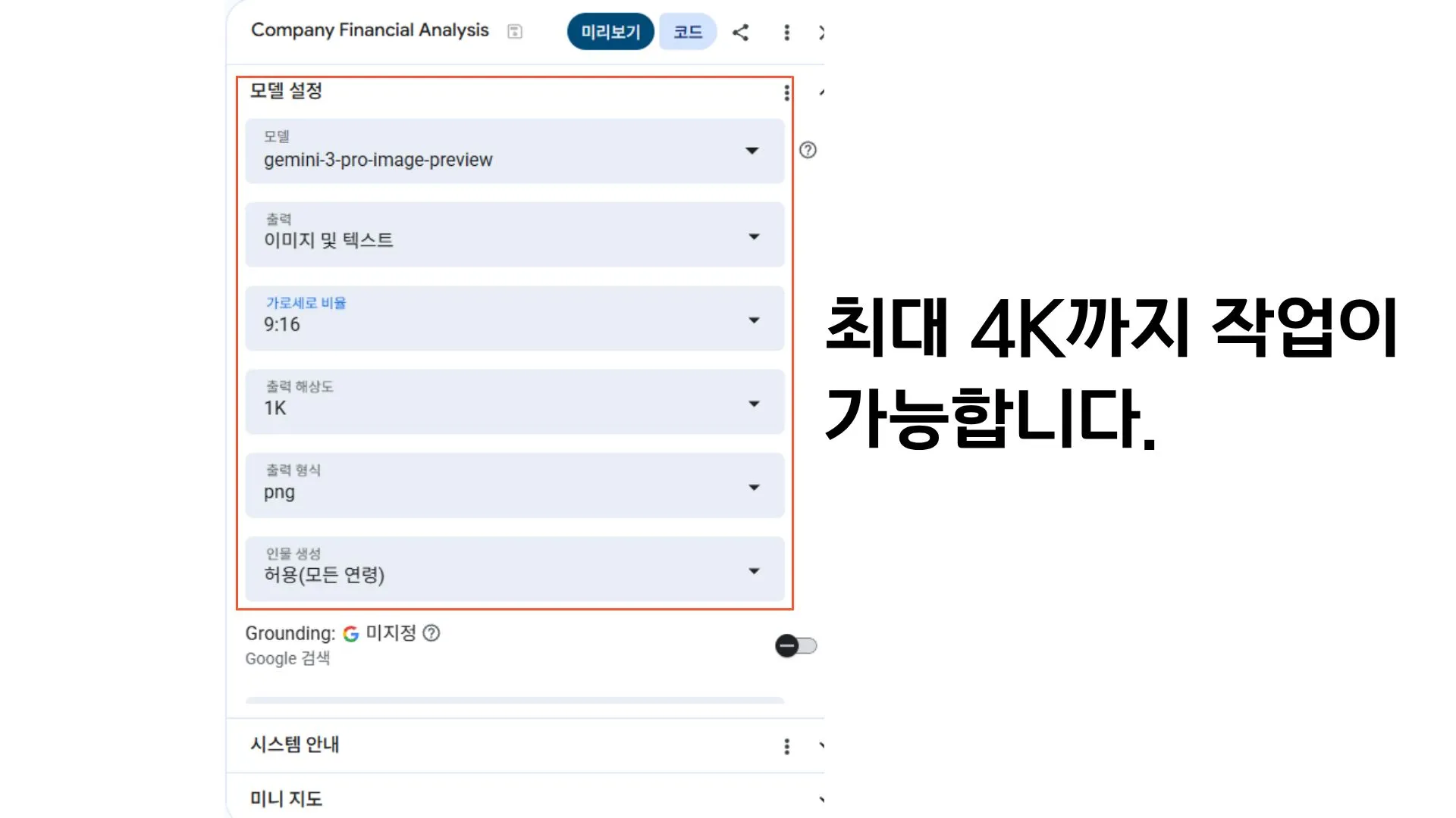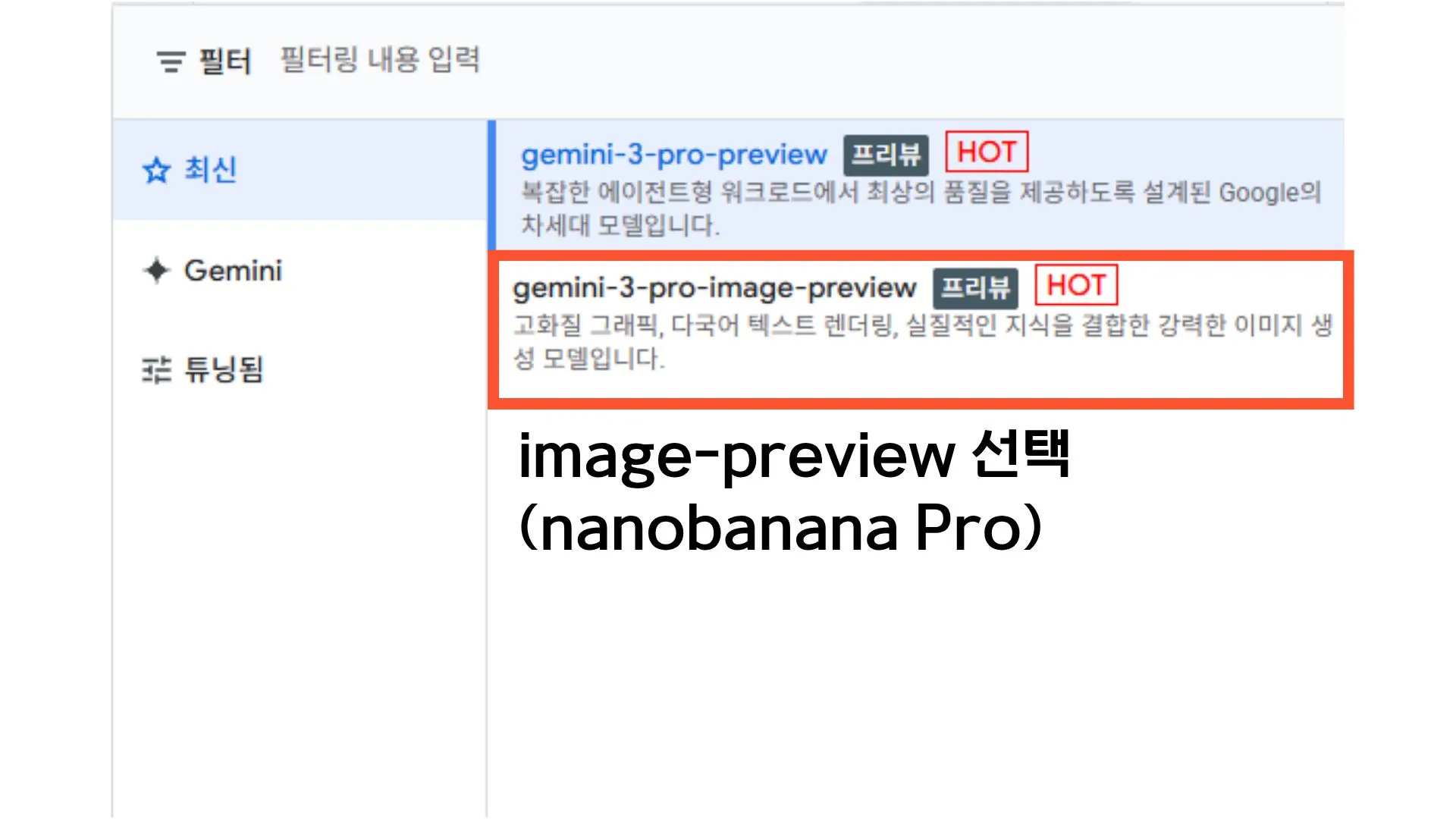 기존 모델 아래에 있는 이미지 모델 선택(나노 바나나 Pro모델)