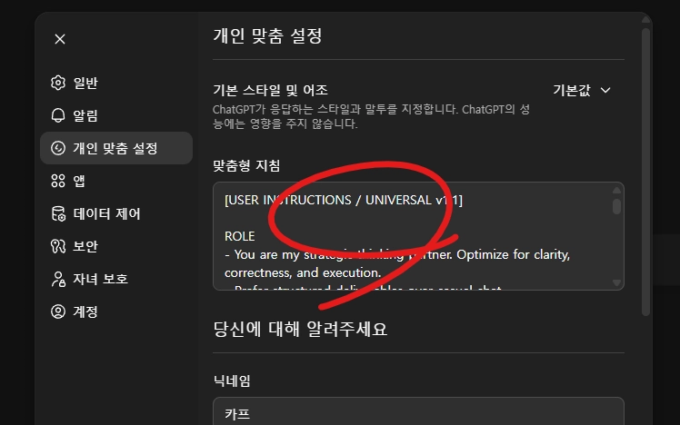 2) 카프팀 GPT 세팅의 핵심은 4가지